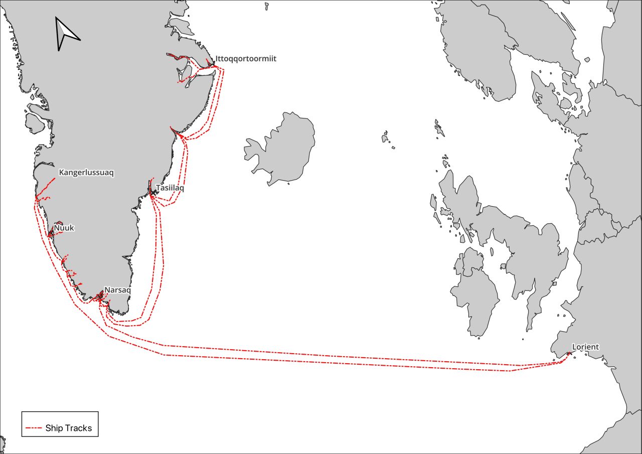 Ports d’escale prévus : Kangerlussuaq, Nuuk, Narsaq, Tasiilaq, Ittoqqortoormiit.